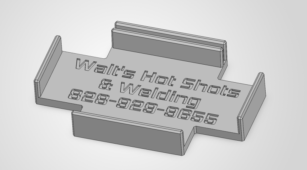 An example of a simple desk designed using square tubing and sheet metal to accommodate a wood panel desktop.Example of a simple Vase/Pen HolderA bubble wand designed & 3D Printed for local performer “Ayla The Dreams Fairy”. This allows her to blow flaming bubbles at her events!Internals of the wand designed & 3D Printed for local performer “Ayla The Dreams Fairy”. This allows her to blow flaming bubbles at her events!Business Card Holders designed for local business “Walt’s Hot Shots & Welding”. Give him a call for all of your hauling and welding repair/fabrication needs @ 828-929-9655.